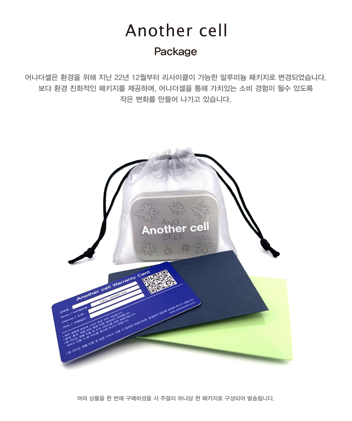 어나더셀은 환경을 위해 지난 22년 12월 부터 리사이클이 가능한 알류미늄 패키지로 변경되었습니다.
